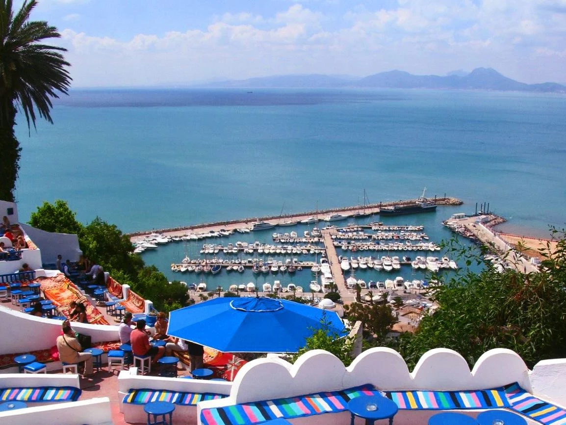 Sidi Bou Said is a historic town located in northern Tunisia, approximately 20 kilometers northeast of the capital city Tunis. Known for its distinctive white-washed buildings and blue doors, it is a cultural and architectural landmark that reflects traditional Andalusian and Arab influences. Perched on a cliff overlooking the Mediterranean Sea, the town is celebrated for its scenic beauty, narrow winding streets, and its role as a symbol of Tunisia's rich heritage.